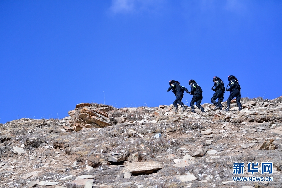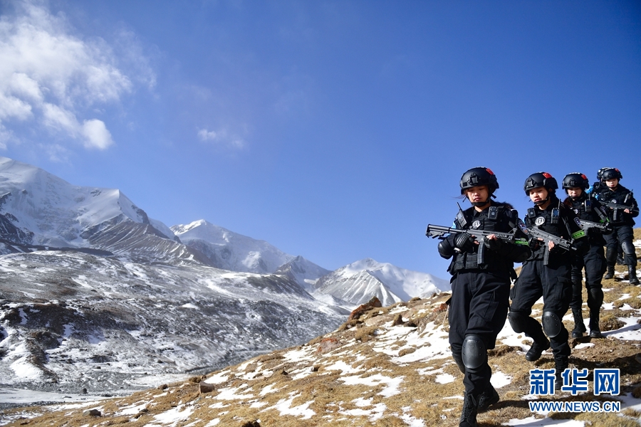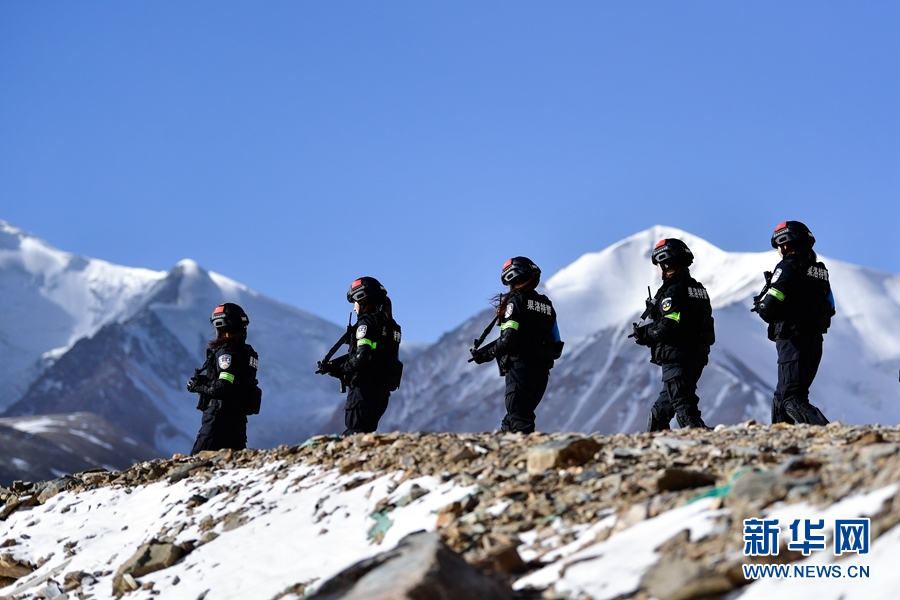 1月9日,青海省果洛藏族自治州公安局特警支隊直屬女子中隊的隊員們在阿尼瑪卿山腳下參加高原野外適應(yīng)性訓(xùn)練。新華社記者 張龍 攝