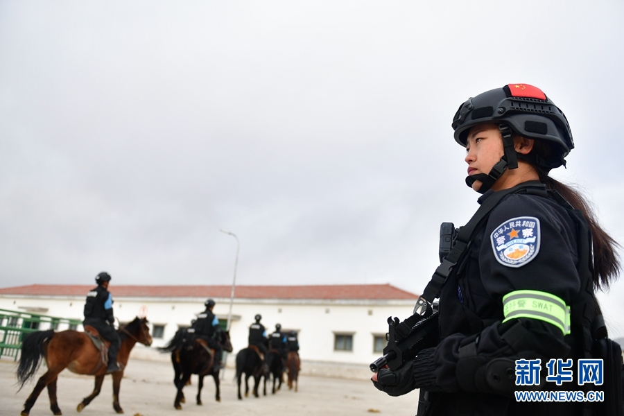 1月9日,青海省果洛藏族自治州公安局特警支隊直屬女子中隊的隊員在進行騎馬執(zhí)勤訓(xùn)練。新華社記者 張龍 攝
