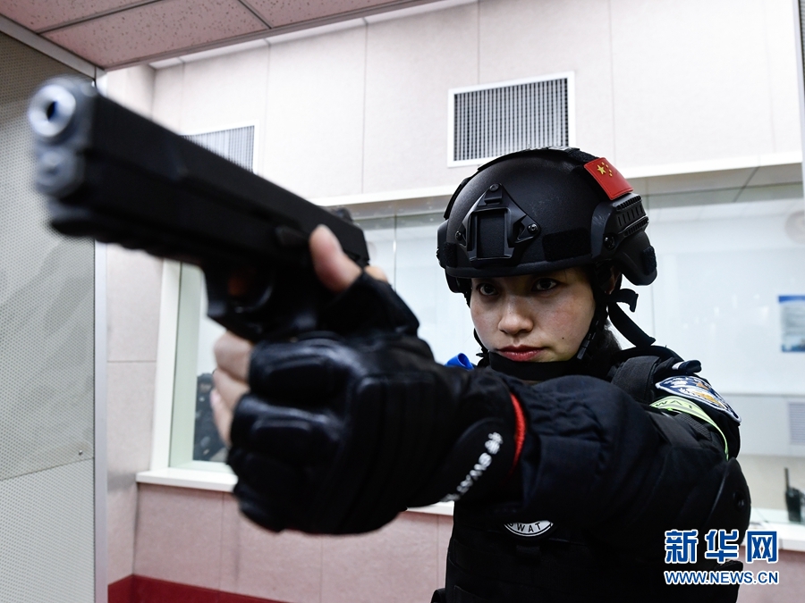 1月9日,青海省果洛藏族自治州公安局特警支隊直屬女子中隊的隊員在參加射擊訓(xùn)練。新華社記者 張龍 攝