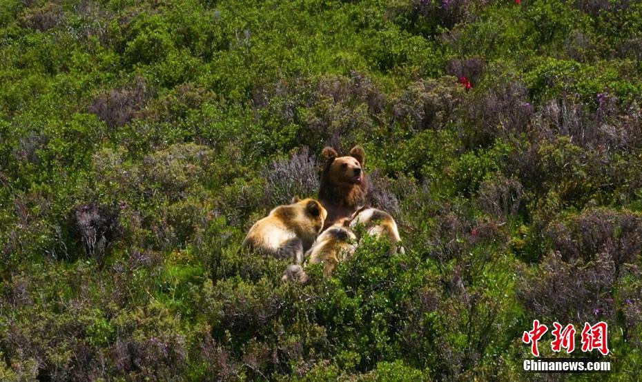 在四川省甘孜藏族自治州石渠縣蒙宜鎮(zhèn)蒙格村附近一處水草豐茂的山坡處拍攝時,偶然發(fā)現(xiàn)一只棕熊媽媽曬著陽光浴給三只小熊喂奶場景,棕熊媽媽喂奶結(jié)束后領(lǐng)著小熊寶寶們緩慢走向大山深處。[詳細]