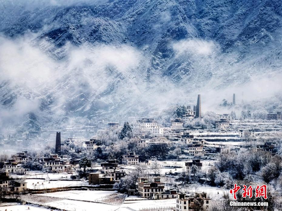 圖為雪后的丹巴甲居藏寨。降初澤郎 攝