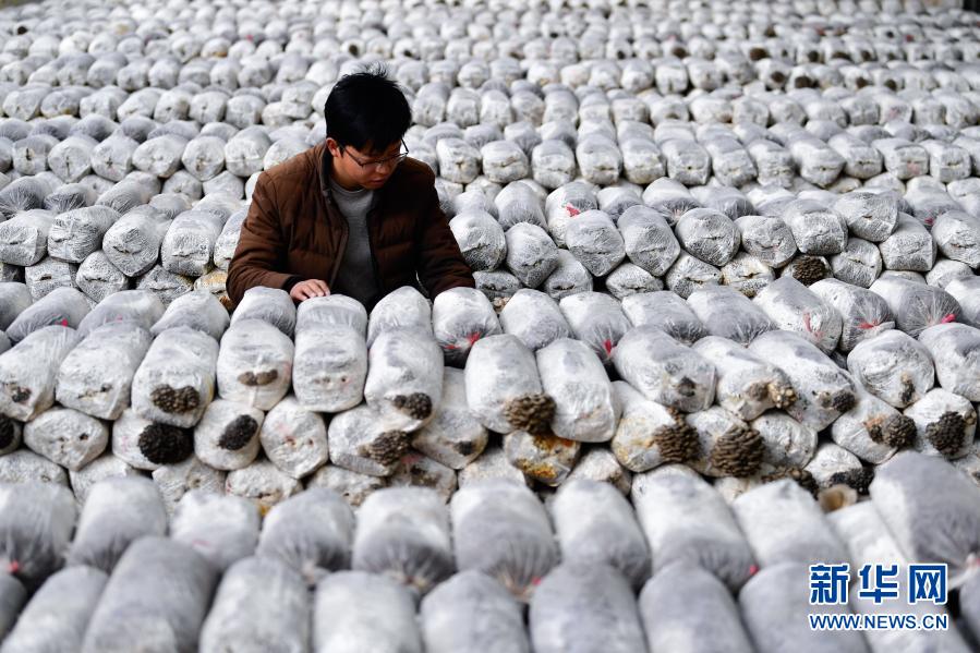 3月14日,在青海省果洛藏族自治州農(nóng)牧業(yè)生態(tài)科技示范園內(nèi),農(nóng)業(yè)技術(shù)員宋建東在查看平菇生長情況。新華社記者 張龍 攝