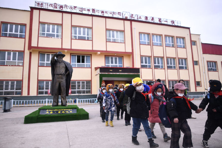 索加鄉(xiāng)寄宿小學(xué)是青海邊遠(yuǎn)牧區(qū)鄉(xiāng)鎮(zhèn)小學(xué)變化的一個(gè)縮影。治多縣教育局局長(zhǎng)美少措毛介紹,“十三五”以來,當(dāng)?shù)卣浴敖逃亲畲竺裆钡睦砟?,健全以政府投入為主、多渠道籌集教育經(jīng)費(fèi)的體制,持續(xù)推進(jìn)學(xué)校標(biāo)準(zhǔn)化建設(shè),充分滿足牧民群眾子女“就近入學(xué)”“上好學(xué)”的需求,實(shí)現(xiàn)了適齡兒童入學(xué)率100%。