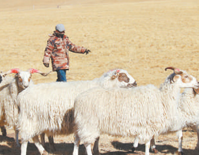 達(dá)玉村生態(tài)畜牧業(yè)專業(yè)合作社放牧員才科在放牧。王梅 攝