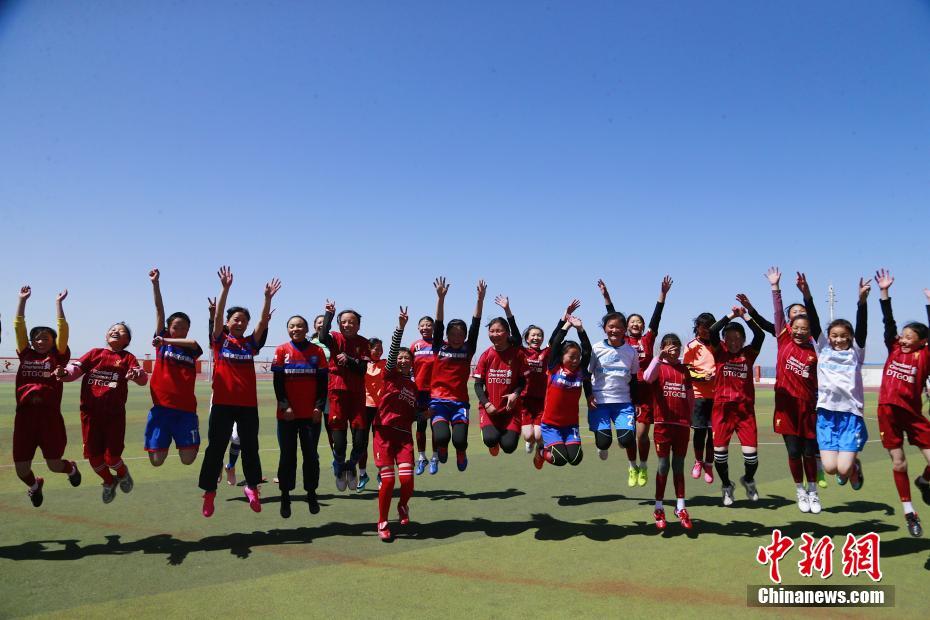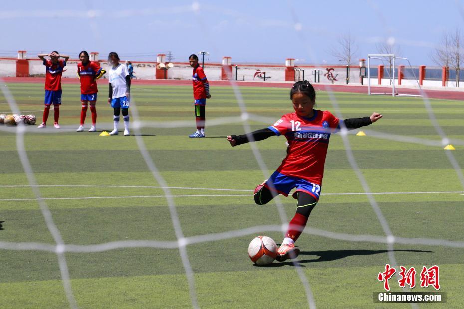4月21日,青海省海南藏族自治州共和縣,青海湖民族寄宿制學(xué)校的足球場(chǎng)上,女子足球隊(duì)的隊(duì)員們正在進(jìn)行訓(xùn)練。該校的女子足球隊(duì)共有小學(xué)組、初中組隊(duì)員53人,皆為來(lái)自牧區(qū)的藏族女孩。中新社記者 馬銘言 攝