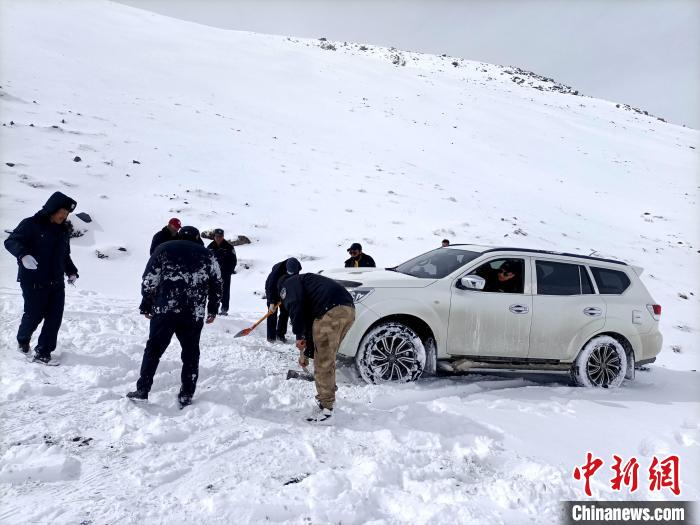 日前,青海省南部的三江源區(qū)域多地降雪,當?shù)厣鷳B(tài)管護人員開啟艱難的風雪巡山路。據(jù)悉,青海省玉樹藏族自治州曲麻萊縣約改鎮(zhèn)崗當村的生態(tài)管護人員,野外巡山途中,大雪封山車輛被困。生態(tài)管護人員清雪無果,便徒步抄小道抵達巡護目的地。返程時,當?shù)啬撩裼媚ν熊噷⑸鷳B(tài)管護人員送至車輛旁邊。
