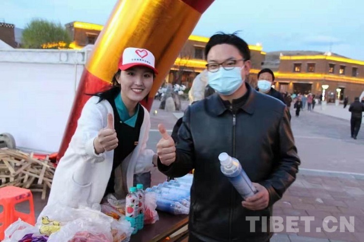 圖為四川省甘孜州甘孜縣志愿者為游客提供幫助