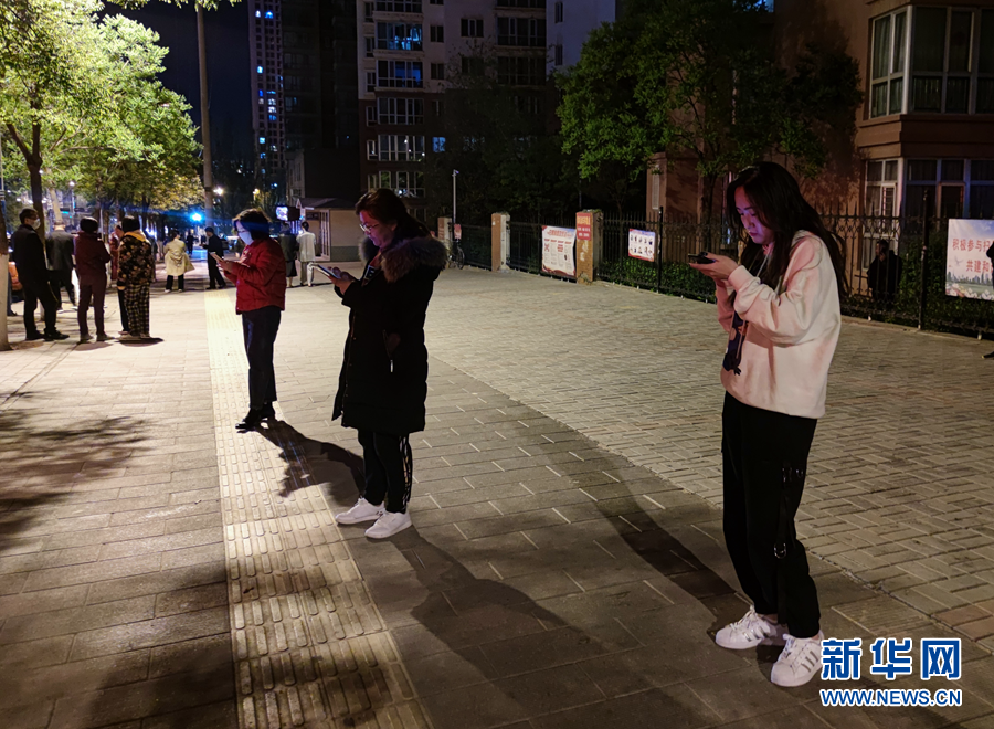 5月22日凌晨,西寧市民在空曠地帶避險(手機(jī)照片)。新華社記者 張龍 攝