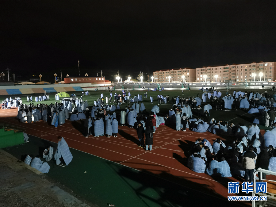 5月22日凌晨,在青海省果洛藏族自治州州府瑪沁縣,果洛州民族高級中學(xué)的學(xué)生在操場避險。新華社發(fā)