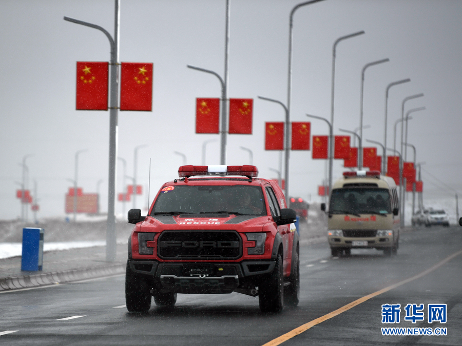 5月22日,救援車輛行駛在瑪多縣城。新華社記者 張龍 攝