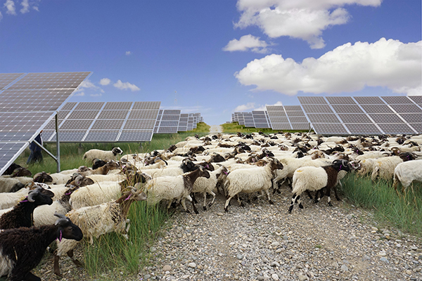 雜草越長越好,既遮擋光伏板工作,在冬季還有火災隱患。周邊村民受邀進園區(qū)放羊, 為鋤草助力。再加上清洗光伏組件、割草、做保安,村民們拓寬了收入渠道,得以脫貧致富。這種牧光互補的模式,實現(xiàn)了經(jīng)濟、環(huán)境效益雙贏,也豐富了清潔能源產(chǎn)業(yè)的內(nèi)涵。
