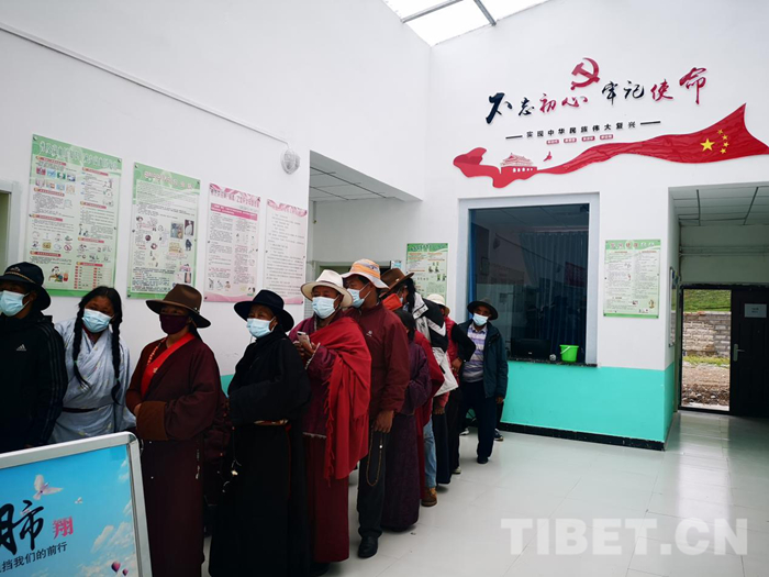 圖為達(dá)日縣建設(shè)鄉(xiāng)排隊就診的群眾 (組委會供圖)