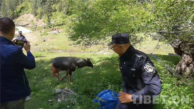 中國(guó)西藏網(wǎng)訊 7月14日清晨7時(shí)許,四川省甘孜藏族自治州新龍縣公安局森林警察大隊(duì)接到群眾報(bào)警稱:一頭不知名的野生動(dòng)物從繞城大橋跳到自家三層樓房的房頂,不能脫身,請(qǐng)求救助。