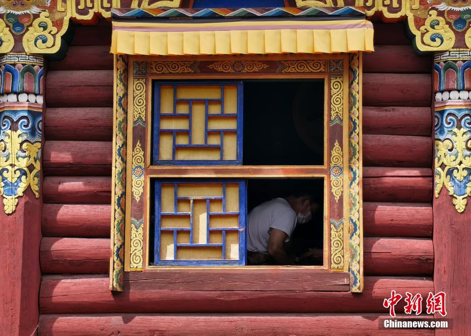 7月20日,四川德格,印經(jīng)院印刷工人進行雕版印刷。中新社記者 劉忠俊 攝