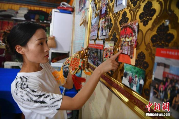 7月22日,提美的女兒邊宗向記者介紹她制作的配飾。中新社記者 劉冉陽 攝