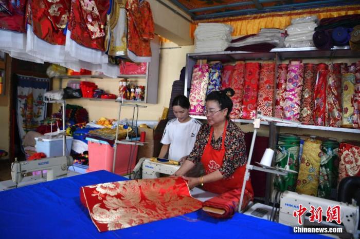 如今,年輕的邊宗正式繼承了母親提美的衣缽,成為藏服制作傳承人。邊宗一邊縫制衣服一邊對記者說,藏服工序繁雜,一會兒要手工,一會兒又要裁剪,一會兒又機(jī)器縫……