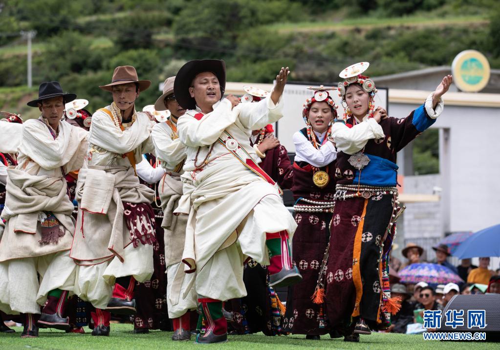 7月23日,在道孚縣縣城,演員們在舞臺上表演。新華社記者 江宏景 攝