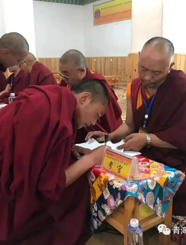 此次招生考試采取現(xiàn)場抽題,中級學(xué)銜智然噶依班的佛學(xué)院理論考試采取辯經(jīng)方式,而初級學(xué)銜禪然巴班采取講經(jīng)或辯經(jīng)方式,預(yù)科班采取筆試方式進(jìn)行(對母語為非藏語的僧人也可采取口試方式);所有考僧的文化考試采取閉卷,政治考試采取開卷。命題使用了統(tǒng)一題庫的試題,整個(gè)招生考試過程嚴(yán)格遵從無地域差別、無教派分別的原則。為確保招生考試的公平、公正,學(xué)院組織各教派經(jīng)師成立7人考評小組,在佛學(xué)理論考試,7位考官打分、去掉一個(gè)最高分、去點(diǎn)一個(gè)最低分后,取平均分?jǐn)?shù)。果洛州瑪沁縣拉加寺格西加華尖措認(rèn)為,這是最公平、公正的考試方法。他說:“考官組由全省各教派的經(jīng)師組成,主要是為佛學(xué)辯經(jīng)和講經(jīng)考試打分,這方面主要采取去掉一個(gè)最高分和一個(gè)最低分,取其他成績平均值后,按照分?jǐn)?shù)權(quán)重計(jì)分的方式計(jì)分,這種打分方式我認(rèn)為是非常公平的?!彼€講到“從本次的考試方式和打分方式看,聘請考官兼顧所有教派,打分采取去除最高分和最低分,取中間成績并加以權(quán)重的方式,對考僧取得一個(gè)公平公正的成績,也是最好的方法?!?/p>