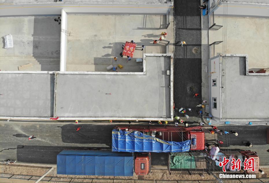 8月7日,甘肅省舟曲縣首批60戶289名地質(zhì)災(zāi)害避險(xiǎn)搬遷村民到達(dá)蘭州新區(qū)并入住。甘肅舟曲縣啟動(dòng)地質(zhì)災(zāi)害避險(xiǎn)搬遷工作,第一批次60戶289人集中告別故土,乘車前往數(shù)百公里之外的蘭州新區(qū)。(無(wú)人機(jī)拍攝) 中新社記者 楊艷敏 攝