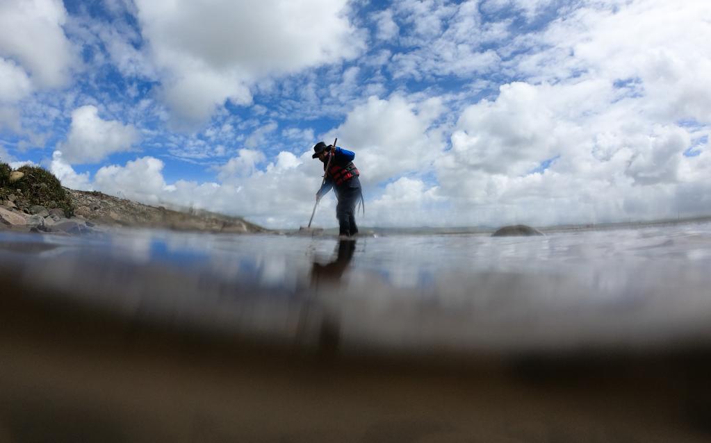 在青海省玉樹藏族自治州治多縣,長江科學(xué)院高級(jí)工程師李偉在科欠曲采集魚類樣本。新華社記者 吳剛 攝