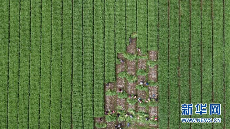 8月13日,在四川省阿壩藏族羌族自治州紅原縣刷經(jīng)寺鎮(zhèn)加當(dāng)村,當(dāng)?shù)厝罕娫谑崭罡咴n筍(無(wú)人機(jī)照片)。新華社記者 江宏景 攝