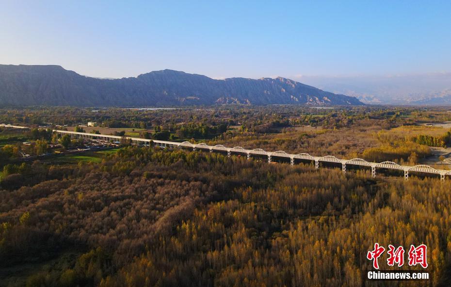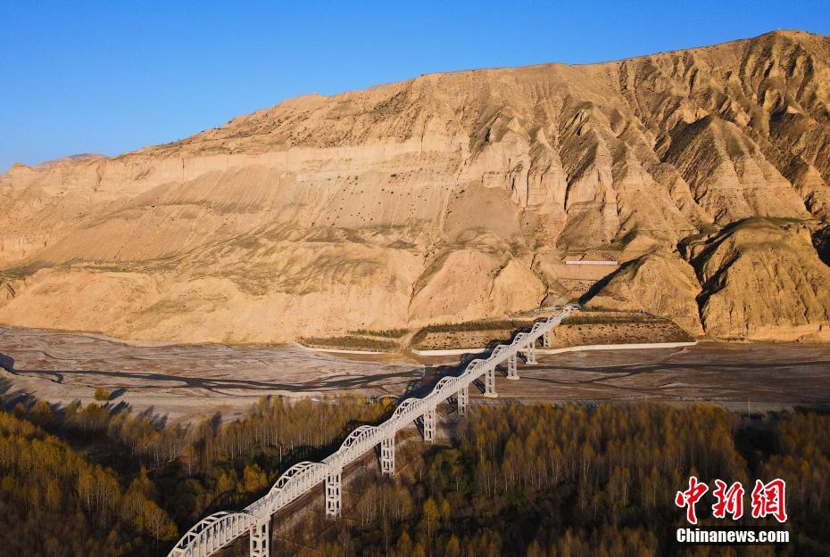 10月16日,航拍青海省海南藏族自治州貴德縣拉西瓦灌溉工程中建設(shè)的渡槽。(無(wú)人機(jī)照片) 中新社記者 馬銘言 攝