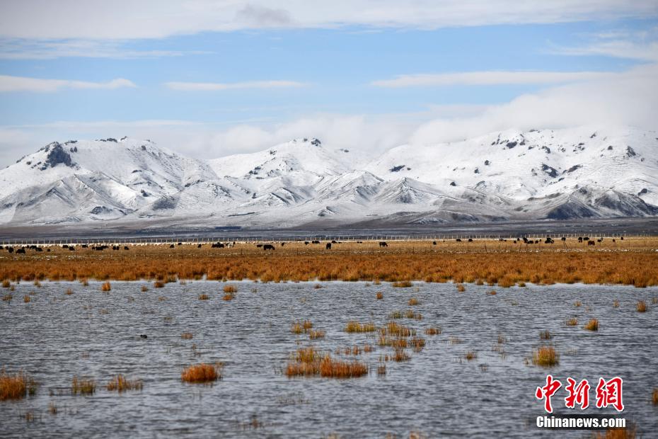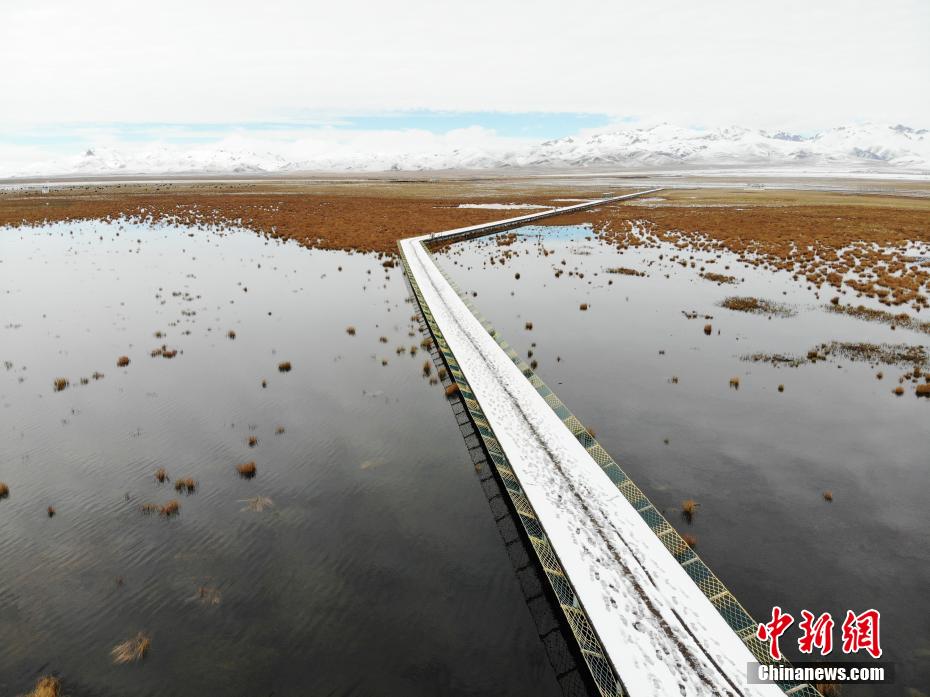 10月20日,四川省阿壩州若爾蓋大草原雪后銀裝素裹。從19日晚間起,若爾蓋縣境內(nèi)迎來降雪,花湖生態(tài)旅游區(qū)被皚皚白雪覆蓋,美輪美奐?;ê屈S河(若爾蓋段)的重要水源涵養(yǎng)地,也是若爾蓋濕地國家級自然保護區(qū)的“實驗區(qū)”的一部分,自保護工作開展以來,花湖自然水位提高30厘米,濕地湖泊面積從原來的215公頃擴大到650公頃,恢復(fù)湖泊周邊半沼澤和干沼澤892公頃。