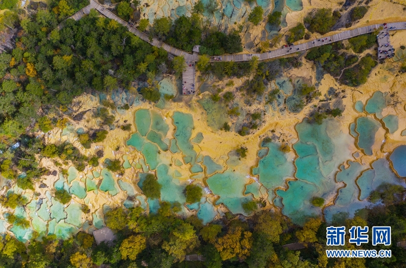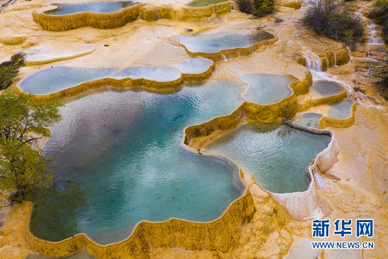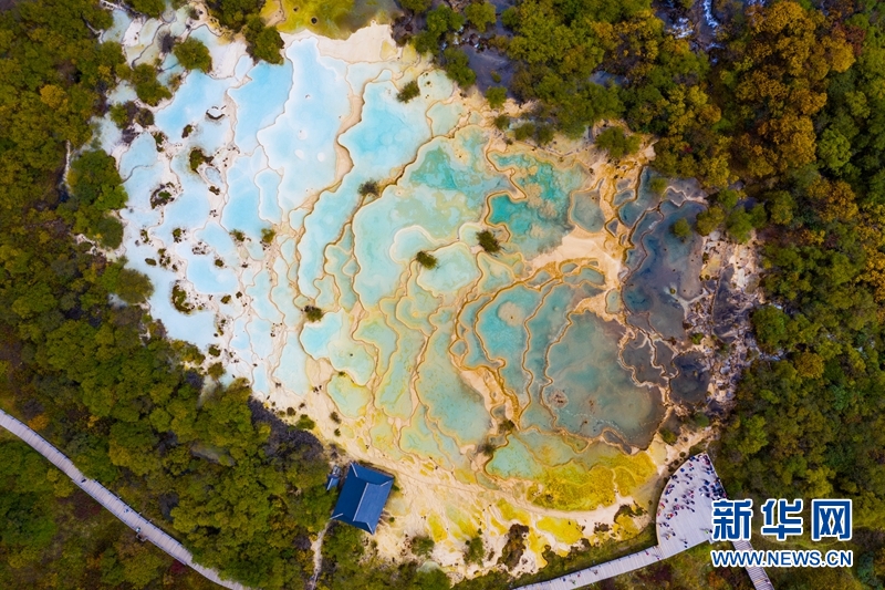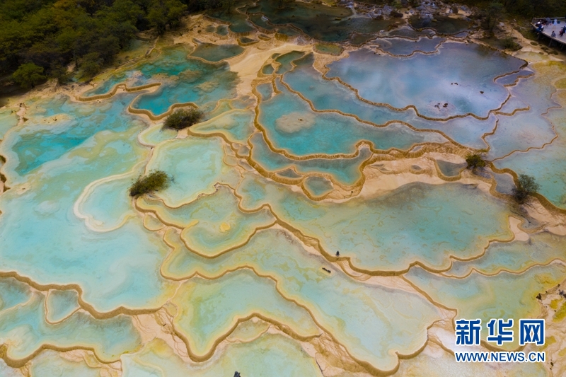 黃龍風(fēng)景區(qū)位于四川省阿壩藏族羌族自治州松潘縣境內(nèi)。地表鈣華是黃龍景觀的最大特色,溝內(nèi)遍布結(jié)構(gòu)造型多姿多彩的露天鈣華堆積體,并呈梯田狀排列,宛如一條金色巨龍從莽莽密林中奔騰而出,并伴有雪山、瀑布、原始森林、峽谷等景觀。黃龍以其雄、峻、奇、野風(fēng)景特色,享有“人間瑤池”的美譽(yù)。