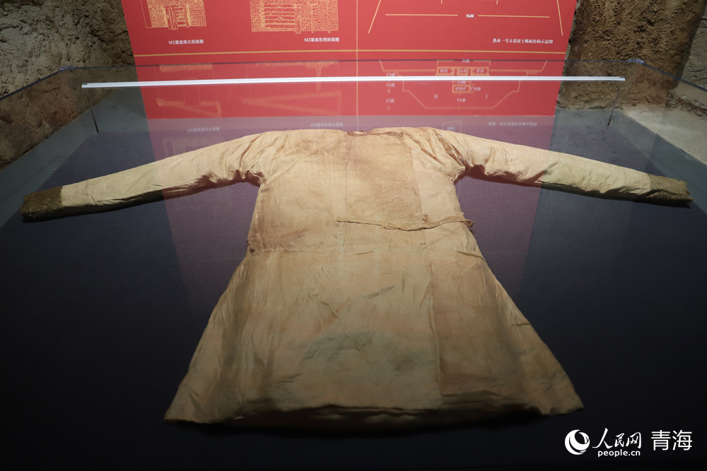 黃地聯(lián)珠團(tuán)窠對(duì)龍紋綾衣(都蘭縣熱水墓群出土)。人民網(wǎng) 楊啟紅攝