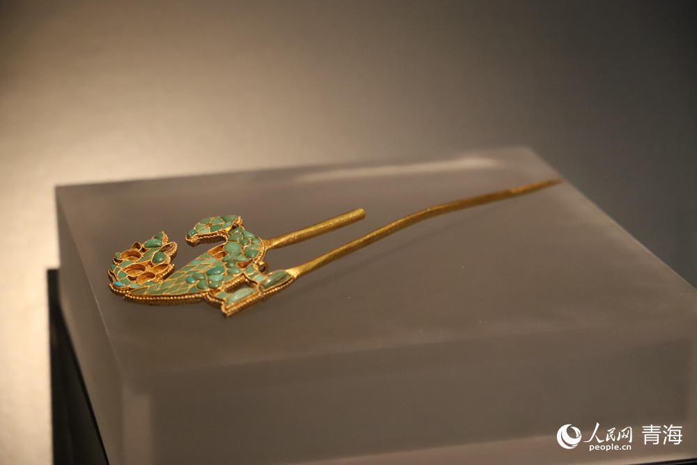 鑲綠松石鳳釵(都蘭2018血渭一號(hào)墓出土)。人民網(wǎng) 楊啟紅攝