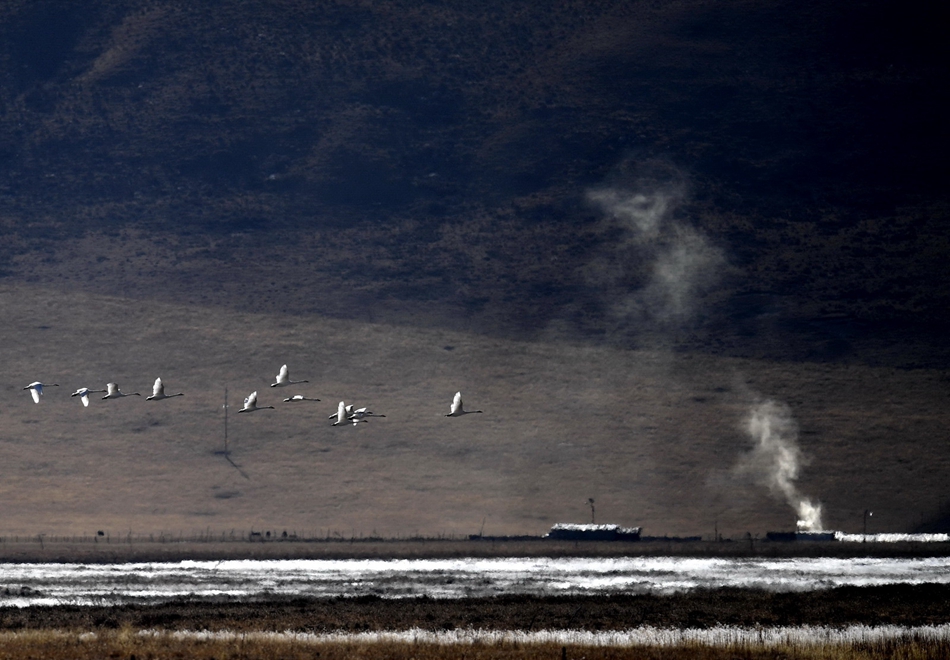 “碌曲縣依托“黃補”區(qū)項目先后將湖邊的尕海鎮(zhèn)、鎮(zhèn)屬機關(guān)單位遷移出了核心區(qū),將居住在尕海湖邊的牧民群眾實施了整村搬遷,有效減緩了對侯鳥的干擾?!备拭C尕海則岔國家級自然保護區(qū)管護中心尕海保護站站長香毛吉說,隨著尕海濕地生態(tài)的持續(xù)改善,為大天鵝提供了穩(wěn)定的越冬水位、豐富的濕地食物,在尕海境內(nèi)越冬的大天鵝數(shù)量逐年增加。