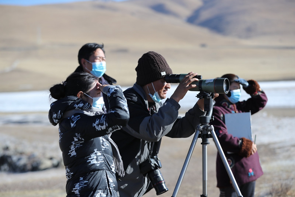 尕海保護站工作人員實地開展鳥類監(jiān)測調(diào)查。