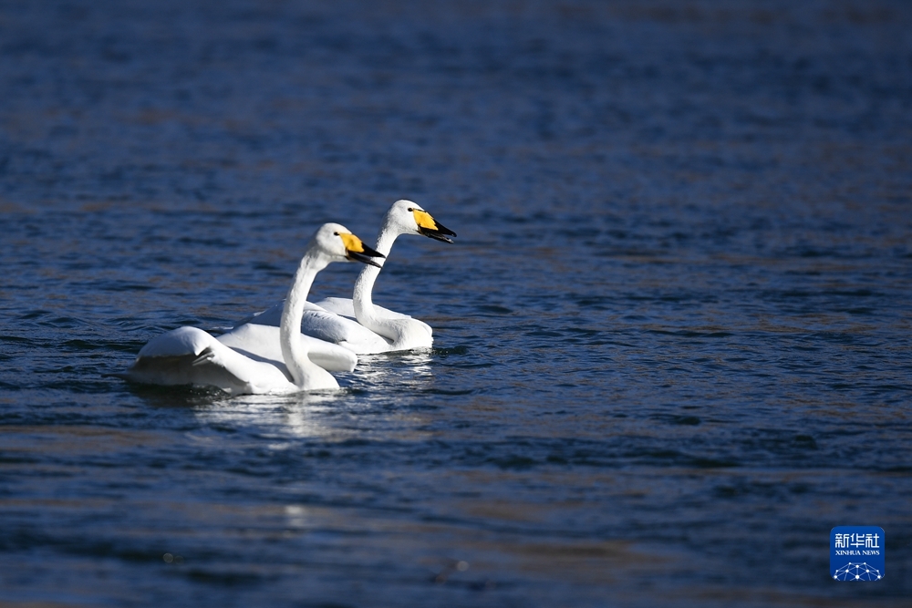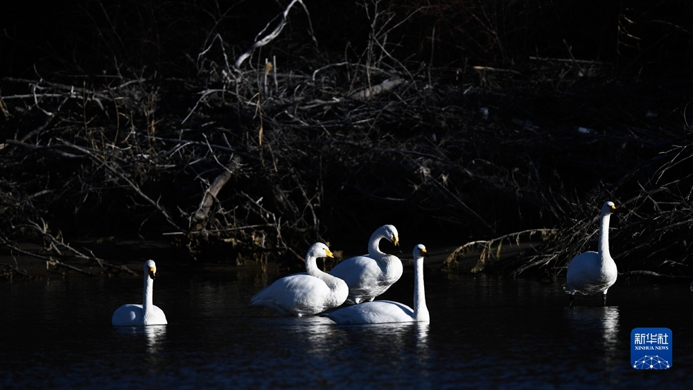 近日,前來(lái)越冬的近百只天鵝在青海省海南藏族自治州貴德縣境內(nèi)的黃河濕地覓食休憩,為冬日黃河帶來(lái)勃勃生機(jī)。近年來(lái),青海省加大力度保護(hù)治理境內(nèi)黃河流域,改善當(dāng)?shù)厣鷳B(tài)環(huán)境,為越冬候鳥(niǎo)提供良好棲息地。