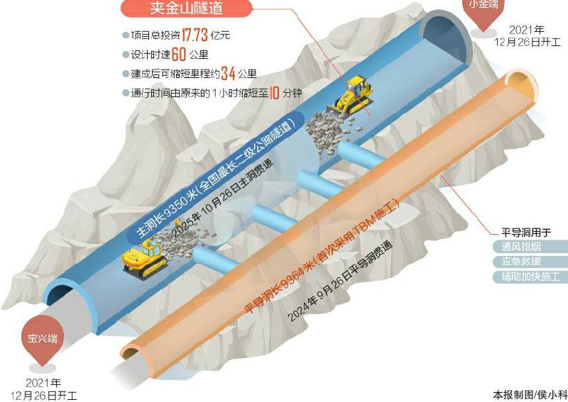夾金山隧道全長9.35公里,建設(shè)工期4年,設(shè)計(jì)時(shí)速60公里,進(jìn)出口在海拔3000米左右,比現(xiàn)在的埡口路段降低1000米,可常年全天候通行,解決了夾金山越嶺路段冬季長期管制通行的問題。隧道建成后,將節(jié)約翻越夾金山里程34公里,通行時(shí)間將由現(xiàn)在的最快1小時(shí)縮短為10分鐘。