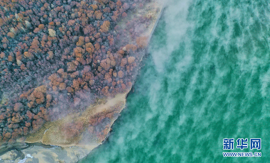 1月2日無(wú)人機(jī)拍攝的貴德縣千姿湖濕地公園。新華網(wǎng) 宋忠勇 攝