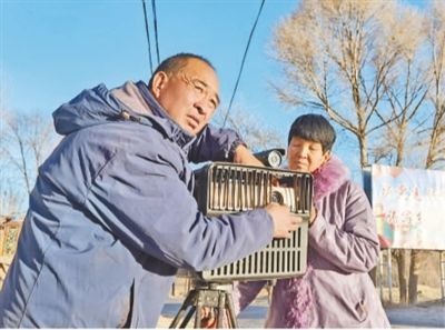 許國強、馬玉梅夫婦在調(diào)試電影放映設(shè)備。