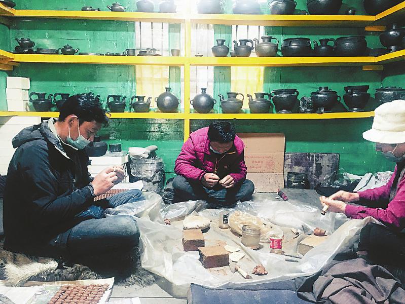 2021年11月被評為第七批省級非遺傳承人的董察日多,是甘孜州青銅鍛造技藝名匠董察白瑪?shù)暮笠?。董察白瑪是舊時德格土司五大家廟的特約工匠,被譽為神匠化身,他開創(chuàng)的董察花色青銅器物制作工藝,一直在家族中流傳。