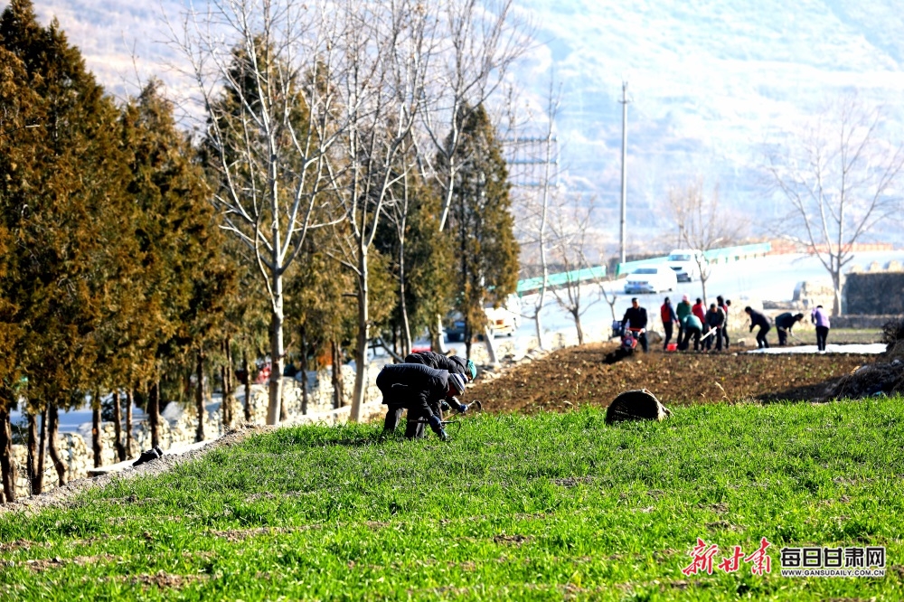 在峰迭鎮(zhèn)嘎麥諾等村組的田間地頭,翻耕機隆隆作響,來回穿梭作業(yè),為田地“舒筋活絡(luò)”。田間地頭上處處是忙碌的身影,農(nóng)戶們?nèi)齼蓛?,或耕地、播種、施肥、覆膜,或扛著鋤頭在田間松土、除草,一幅“春忙備耕圖”正在鄉(xiāng)村田野間徐徐展開。