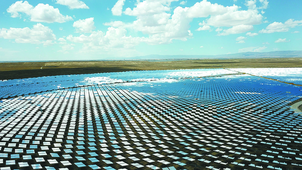 一排排光伏發(fā)電板一望無際,猶如一片藍(lán)色海洋,矗立其中的一座座輸電鐵塔,像藍(lán)色大海上的風(fēng)帆……如今,新能源產(chǎn)業(yè)占比已到海南州工業(yè)經(jīng)濟(jì)的一半以上,爭當(dāng)“綠色經(jīng)濟(jì)”排頭兵的道路上疾步前行的海南正在實(shí)現(xiàn)生態(tài)效益和經(jīng)濟(jì)效益“雙贏”。