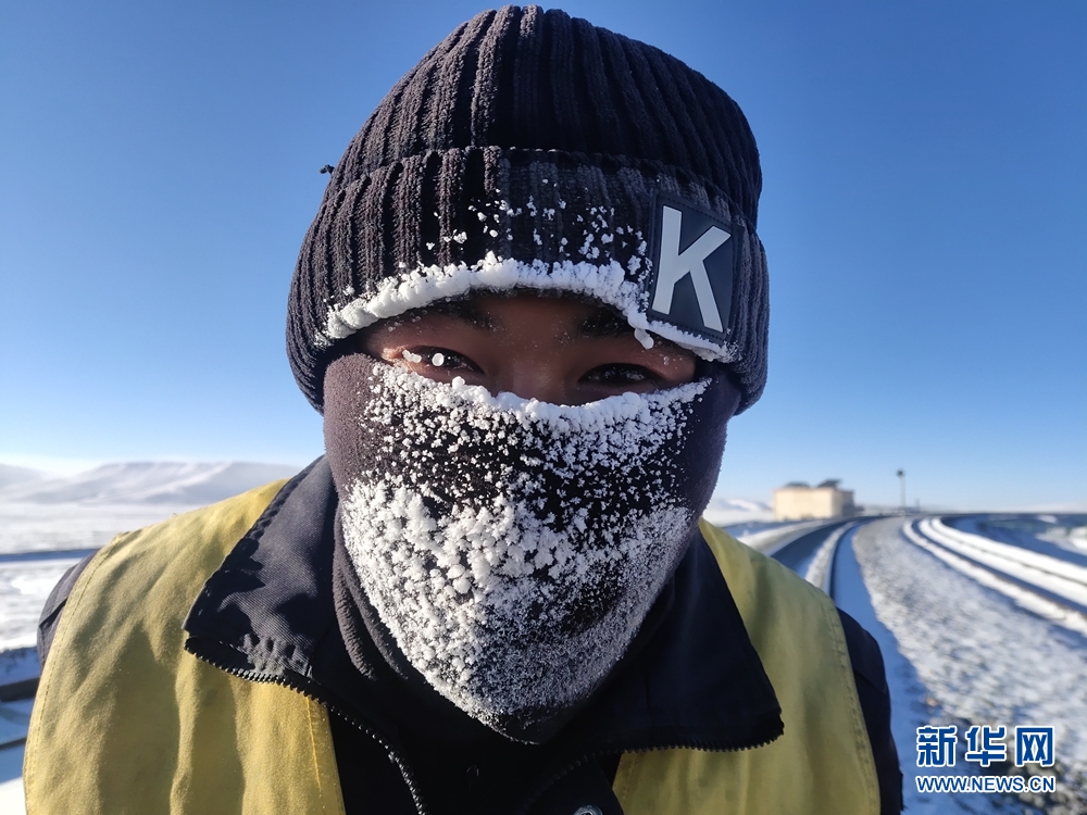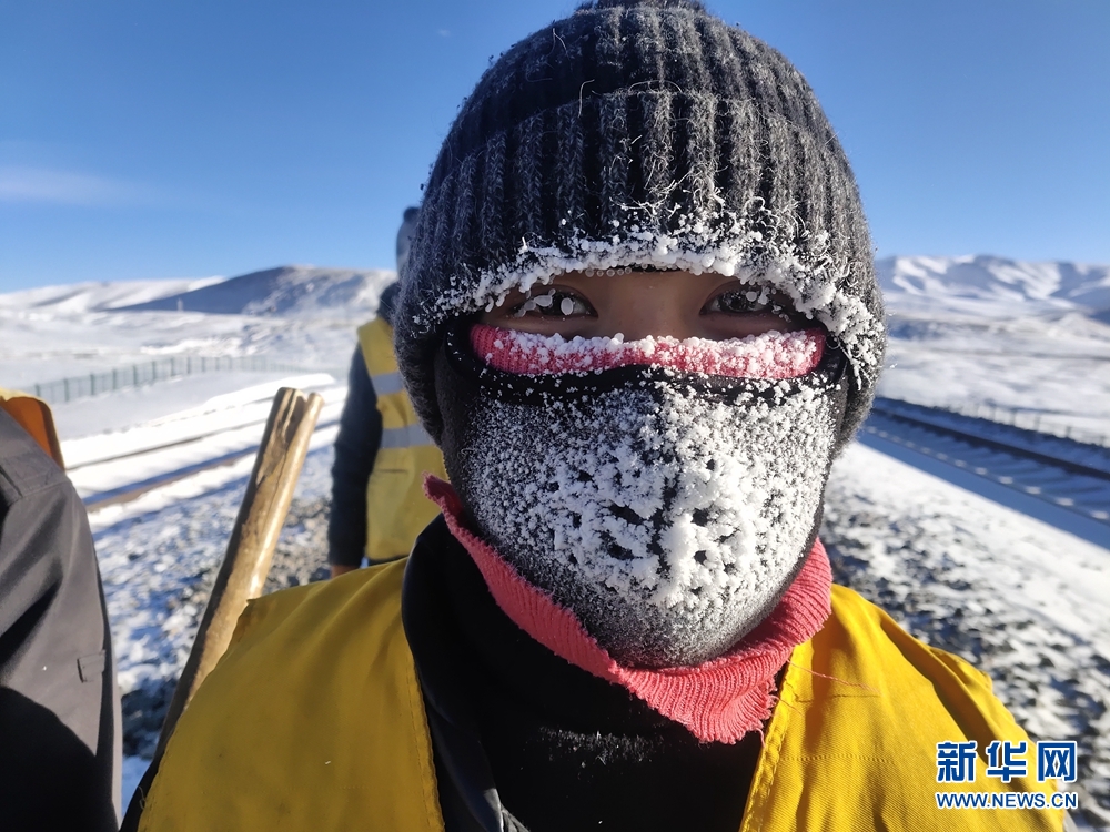 一天的工作結(jié)束后,她們的帽子、脖套上已布滿厚厚的冰霜。圖為中國(guó)鐵路青藏集團(tuán)公司格爾木工務(wù)段職工才仁文毛。