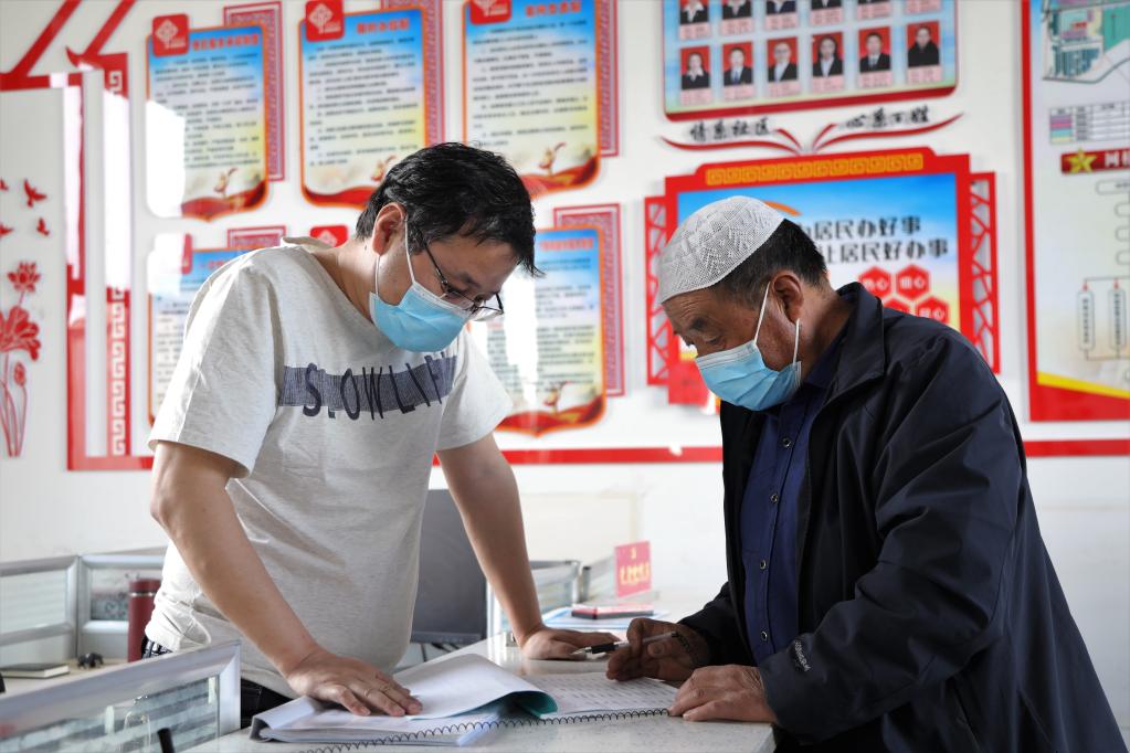 3月9日,在社區(qū)“石榴籽家園”,居民馬應(yīng)洪(右一)在向工作人員咨詢醫(yī)保相關(guān)政策。新華社記者 趙玉和 攝
