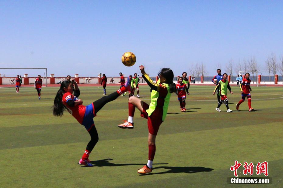 • 青海湖畔的校園女子足球隊 成員清一色藏族女孩