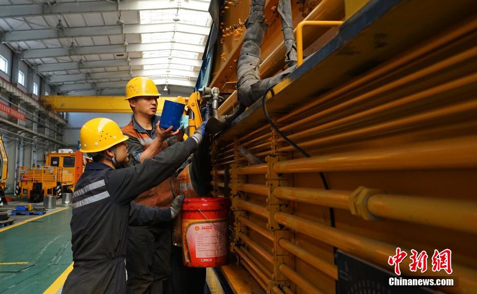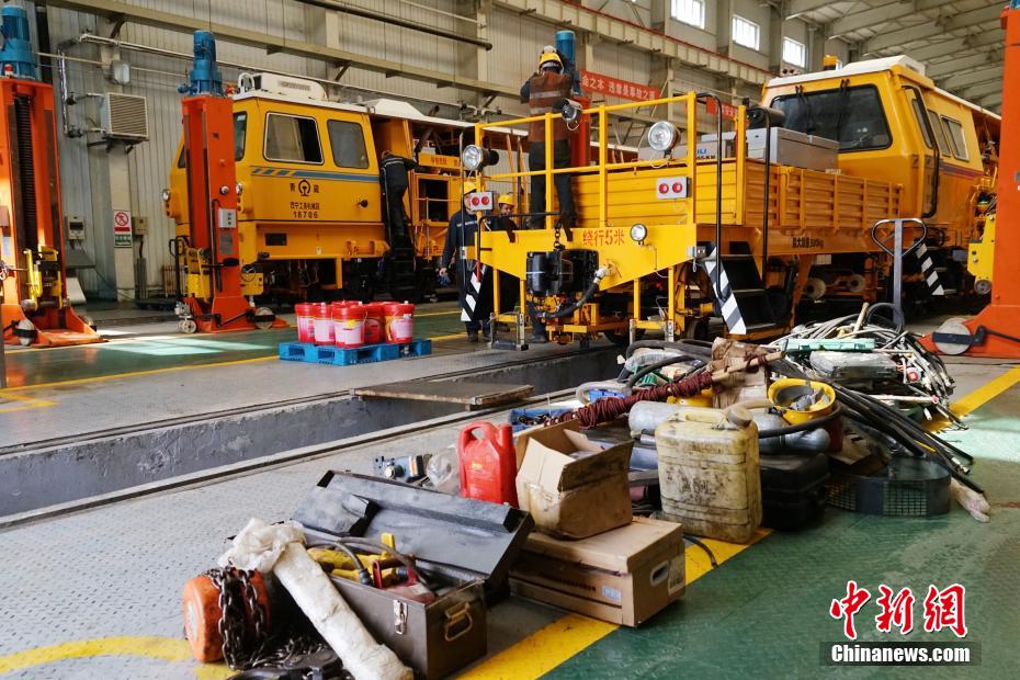 4月8日,在青藏集團(tuán)公司西寧工務(wù)機(jī)械段檢修車間內(nèi),職工正為檢修大型養(yǎng)路機(jī)忙碌著。因高原海拔高、冬季鐵路線路質(zhì)量不易控制,西寧工務(wù)機(jī)械段施工季均在每年4月份至11月份,作業(yè)范圍覆蓋整個青藏鐵路。此前,所有大型養(yǎng)路機(jī)械都需進(jìn)行設(shè)備年度集中修,經(jīng)維修作業(yè)裝置、檢查電路及液壓系統(tǒng)、探傷車軸損傷、校驗制動閥件等并檢驗合格后才能上線作業(yè)。檢修車間每年的年度集中修都在檢修庫內(nèi)進(jìn)行,俗稱“大機(jī)4S店”。