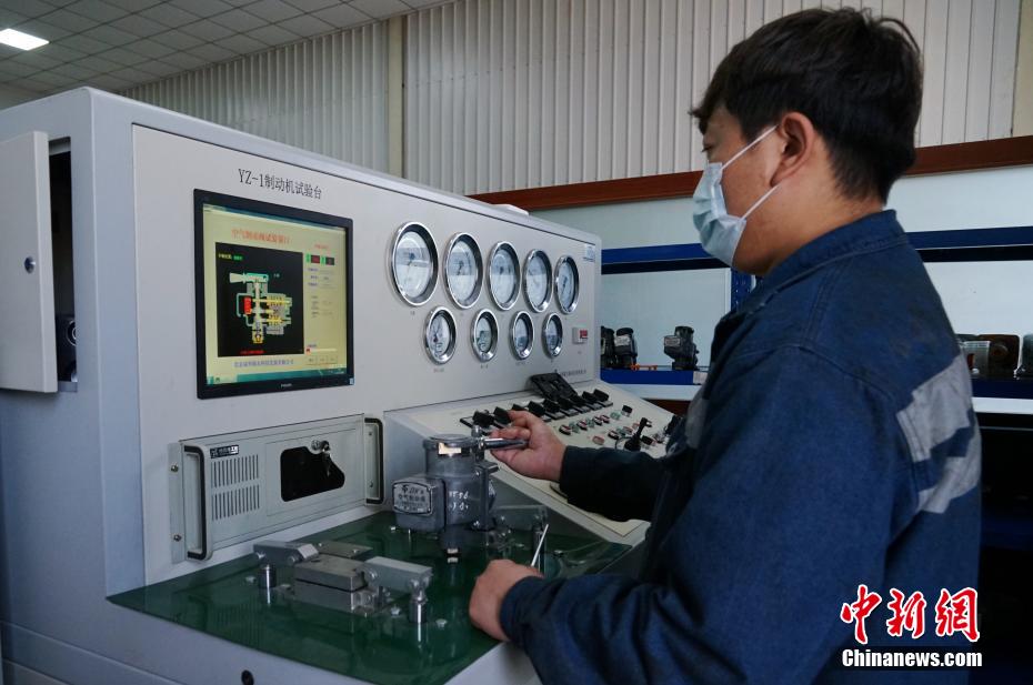 圖為職工校驗YZ—1空氣制度閥。馬銘言 攝