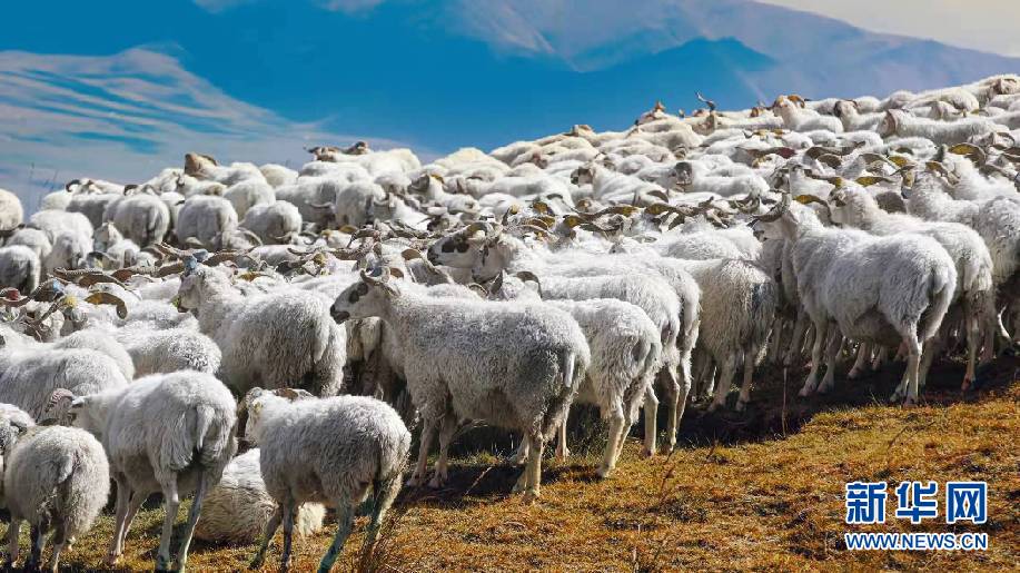 共和縣倒淌河鎮(zhèn)次汗達(dá)哇村的藏羊養(yǎng)殖基地的藏羊(資料圖)。新華社記者 柳澤興 攝