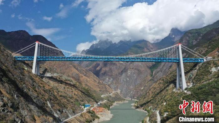 滇藏鐵路麗香段是連接麗江市與迪慶藏族自治州香格里拉市的“天路”,金沙江特大橋是全線控制性工程。大橋全長(zhǎng)882.5米,主跨達(dá)660米,橋面離江面垂直距離約250米,相當(dāng)于80余層樓房高度。主橋采用懸吊上承式鋼桁梁懸索橋,大橋兩端均與隧道連接,建成后將創(chuàng)鐵路建設(shè)最大跨度鋼桁梁懸索橋等多項(xiàng)紀(jì)錄。