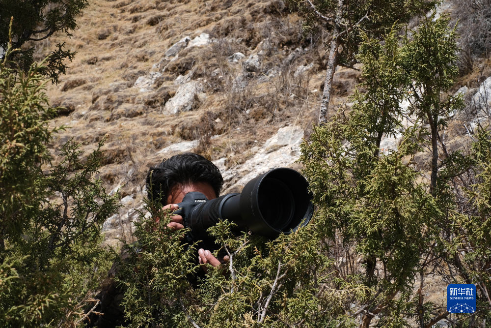 4月22日,生態(tài)管護(hù)員達(dá)杰在拍攝野生動物。新華社記者 童昊 攝