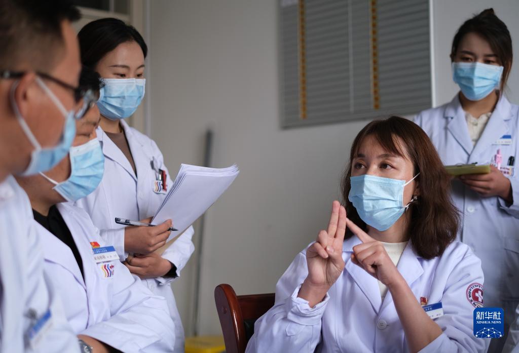 4月25日,青海省人民醫(yī)院醫(yī)生、青南支醫(yī)隊(duì)員謝延玲(右二)和青海省玉樹(shù)藏族自治州人民醫(yī)院醫(yī)生探討患者病情。新華社記者 央秀達(dá)珍 攝