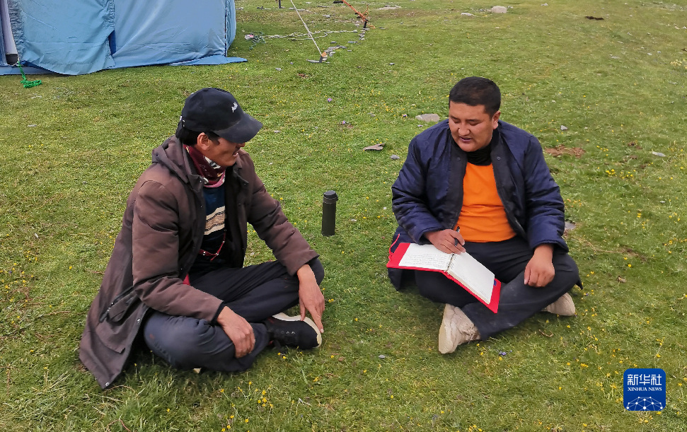 才丁加(右)正和牧民商量合作社整合草山的事宜。(受訪者供圖)