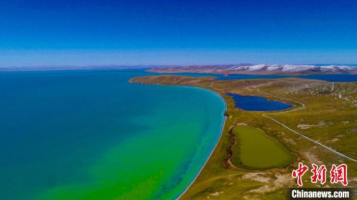 圖為無人機(jī)航拍黃河源頭瑪多湖泊一角。多太 攝